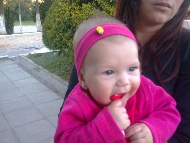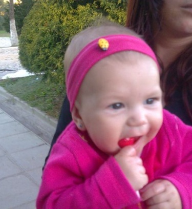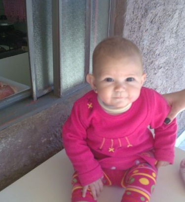 Uma linda menininha com olhos azuls como o céu,de um sorriso lindo mesmo sem dentes todos a adoram.