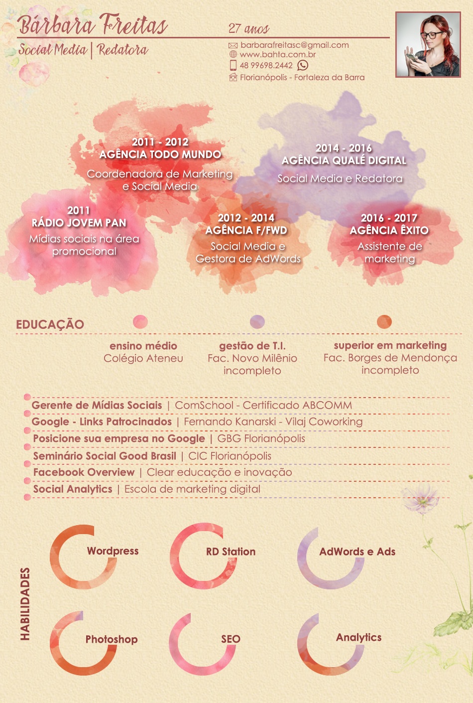 Entre constantes mudanças acumulo experiência de vida e profissional. Trabalho há aproximadamente 6 anos como criadora de conteúdo online e marketing digital, ja atuei com grandes empresas de nível nacional e internacional.