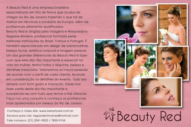 A Beauty Red é uma empresa Brasileira,localizado no Bairro de Botafogo especializada em Maquiagem de Noiva,trazendo o que há de melhor em técnicas,MAQUIAGEM COM AIRBRUSH,e VISAGISMO para noiva.