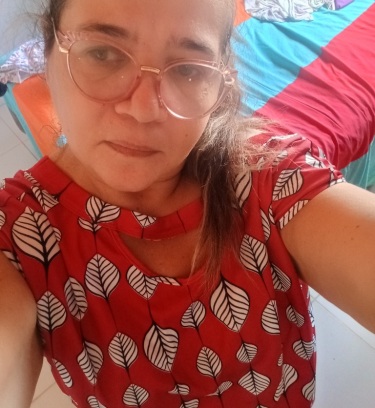 Sou expansiva, alegre, gosto de me arrumar quando tenho roupa, gosto de arrumar o cabelo, tenho cabelo comprido, olhos verdes, sou branca.