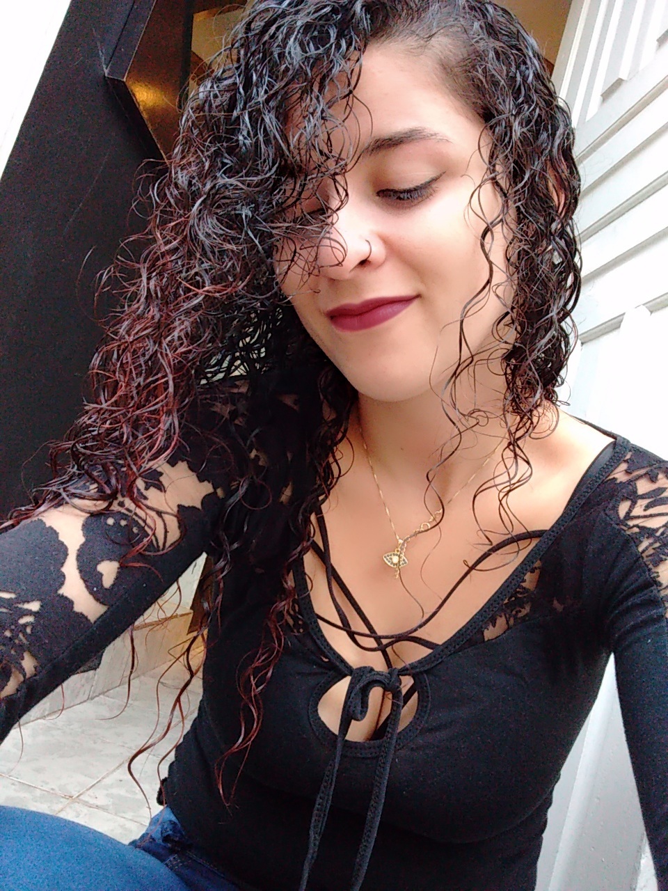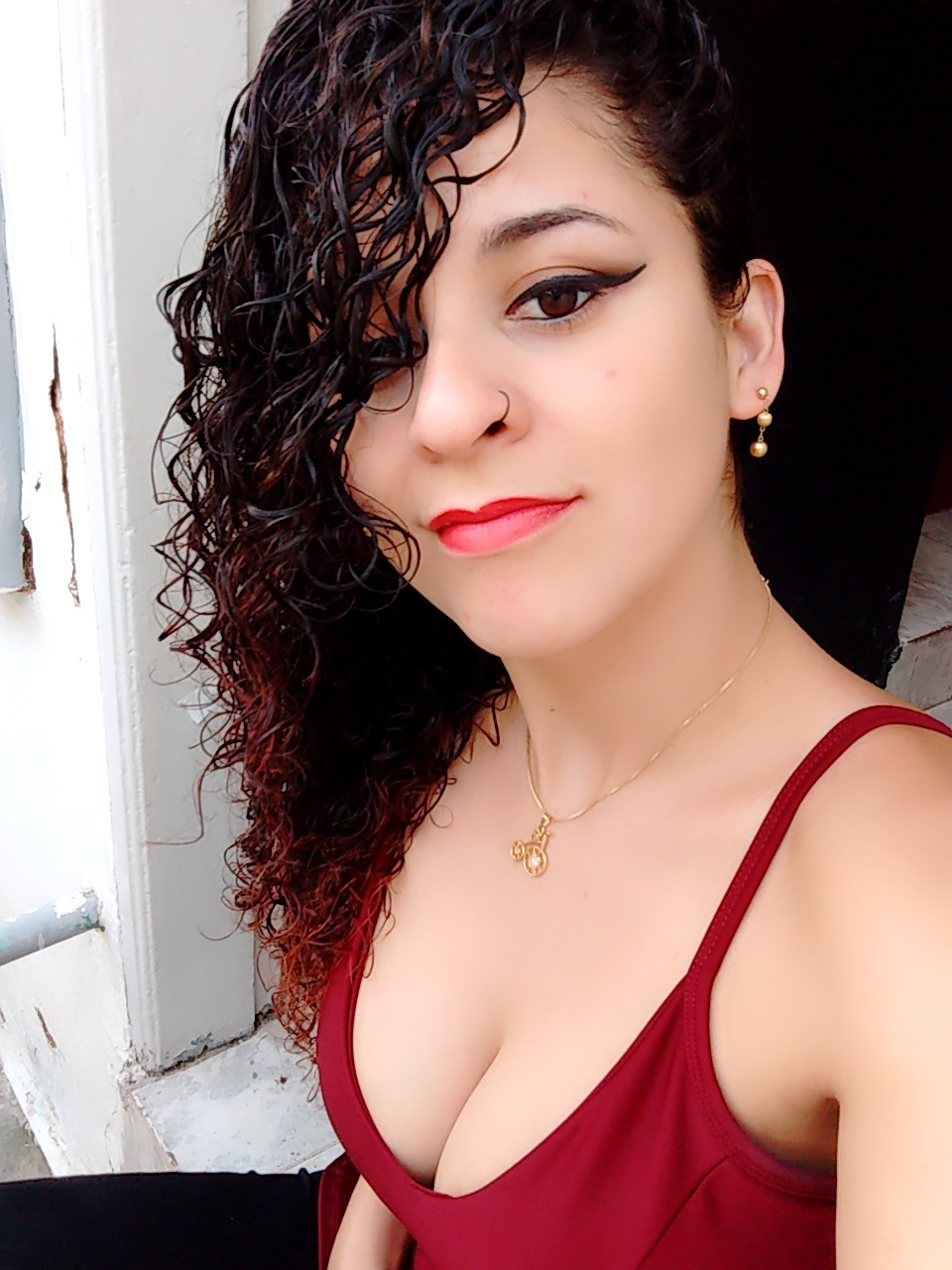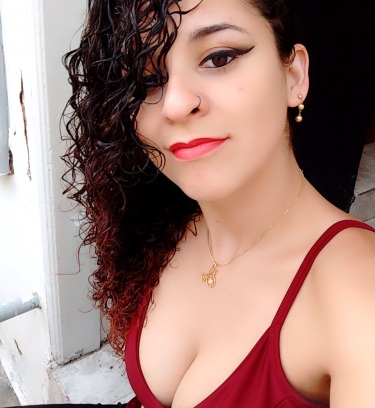 Sou branca, cabelos cacheados, magra.