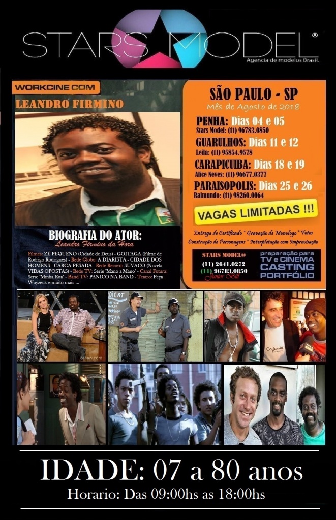 Somos uma AGÊNCIA com mais de 1.800 (Um mil e Oitocentos) FIGURANTES gadastrados e todos com fotos de corpo e rosto, temos MODELOS e ATORES. Tambem somos AGÊNCIA DE MODELOS e PRODUTORA DE SHOWS & EVENTOS, com mais de 26 anos de mercado. Temos de todas as idades e estamos a disposição para atendermos a EMISSORAS DE TV, CINEMA, TEATRO e outros.