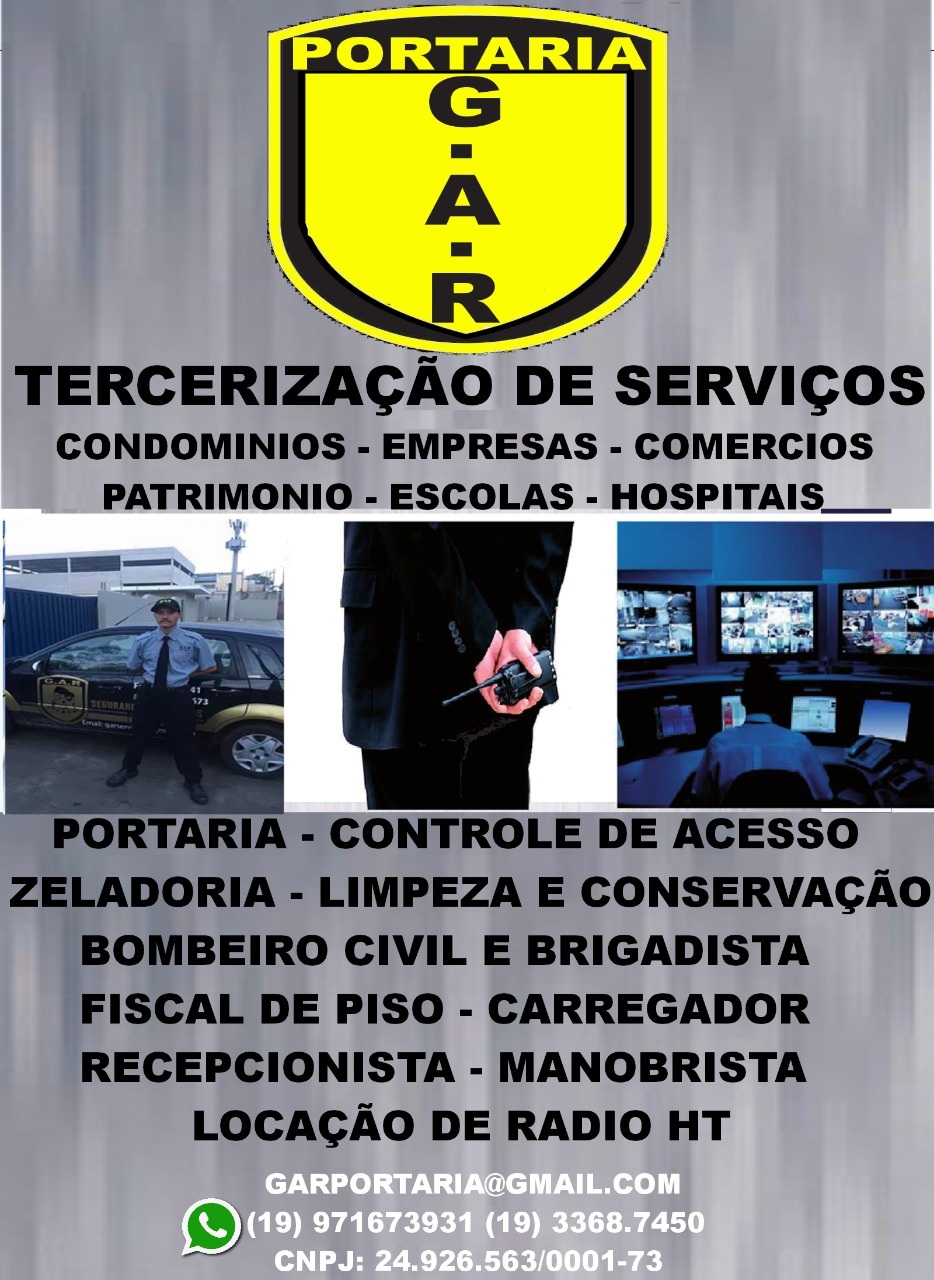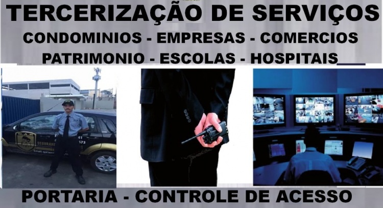 Empresa especializada em Terceirização de Serviços voltados nas areas de...Vigilancia Armada,Segurança,Portaria,Controle de Acesso,Fiscal de Loja,Limpeza,Bombeiros e Brigadistas,Carregadores,Monobristas,Recepcionistas,