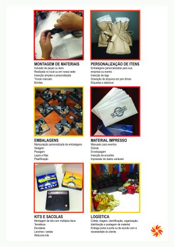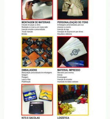 Aqui você encontra as ferramentas para a execução das mais originais idéias em manuseio para a entrega de um produto final. Ações promocionais, eventos...