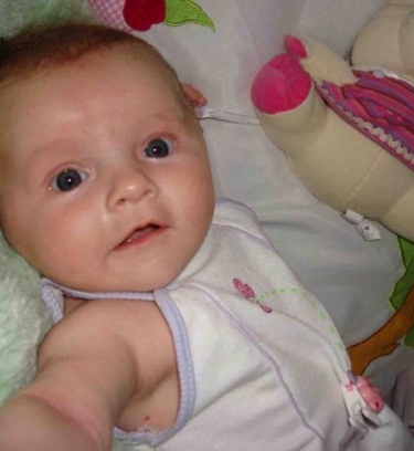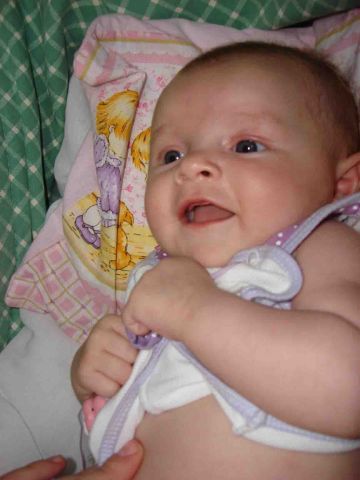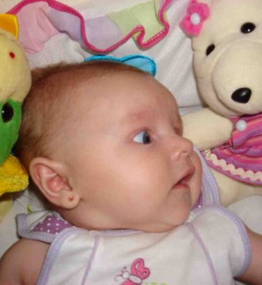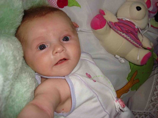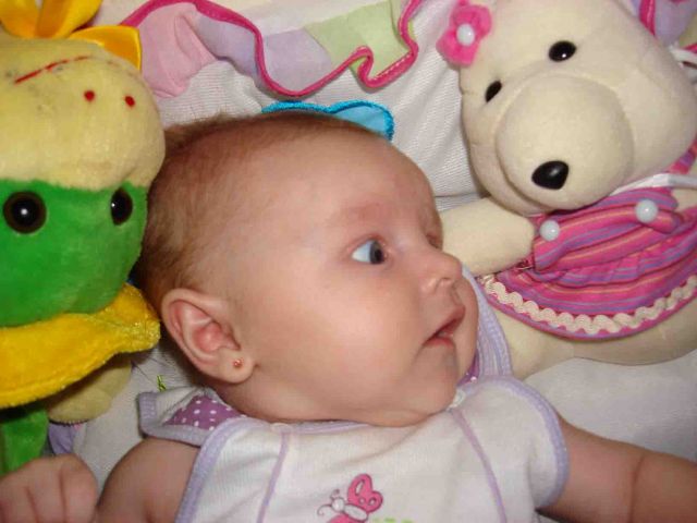Bebê linda de olhos azuis acinzentados, loira, 3 meses de idade super comunicativa desde cedo.
