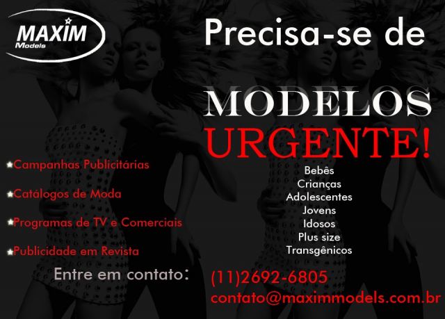 Estamos Selecionando Crianças ,Plus Size ,Adultos e Adolescentes para Campanhas Publicitárias, Feiras,Eventos,Catálogos e Comerciais de Tv 11 2692-6802 -2692-6805 -26926811 www.maximmodels.com.br