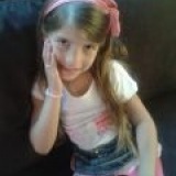 Isabela, 6 anos, cabelos loiros na altura da cintura, olhos castanhos.