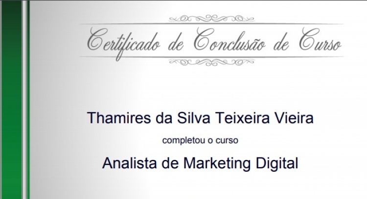 Apaixonada por e-commerce e redes sociais, comecei minha jornada no mundo do marketing quando passei a trabalhar para um e-commerce de produtos personalizados, onde me especializei na prática a planejar ,criar e atualizar todo tipo de conteúdo para redes sociais, sendo responsável pela identidade da empresa, conversão, engajamento e tráfego, utilizando ferramentas essenciais como google adwords, analytics, wordpress, um pouco de HTML, email marketing, photoshop para criaçao de banners, etc. Procuro no momento estagiar ou ser admitida como trainee e aprender cada vez mais. Ja estou realizandoum curso para especialização como Analista de marketing digital e terminando minha graduação em marketing. Sou pro ativa, curiosa, disciplinada e criativa. No meu tempo livre toco piano, escuto música, leio livros sobre marketing, assisto séries, e estou sempre a procura de um novo projeto para desafiar minhas habilidade e sair da minha zona de conforto. Meu inglês é intermediário e estou disposta a viajar pela empresa.
