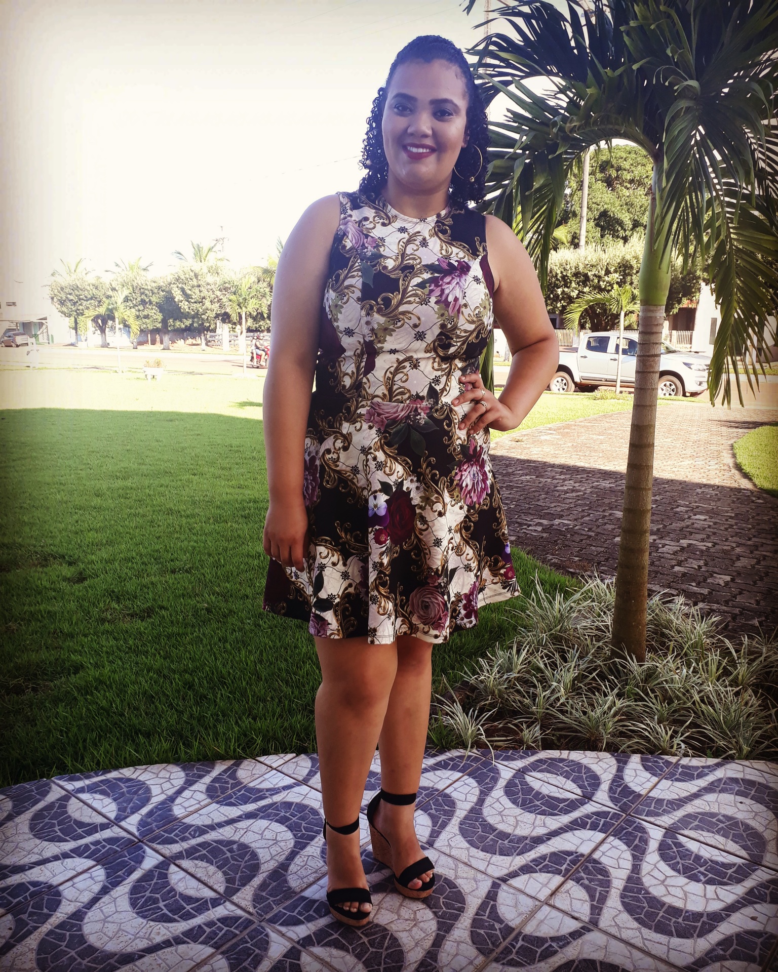 Alta, cabelos cacheados,