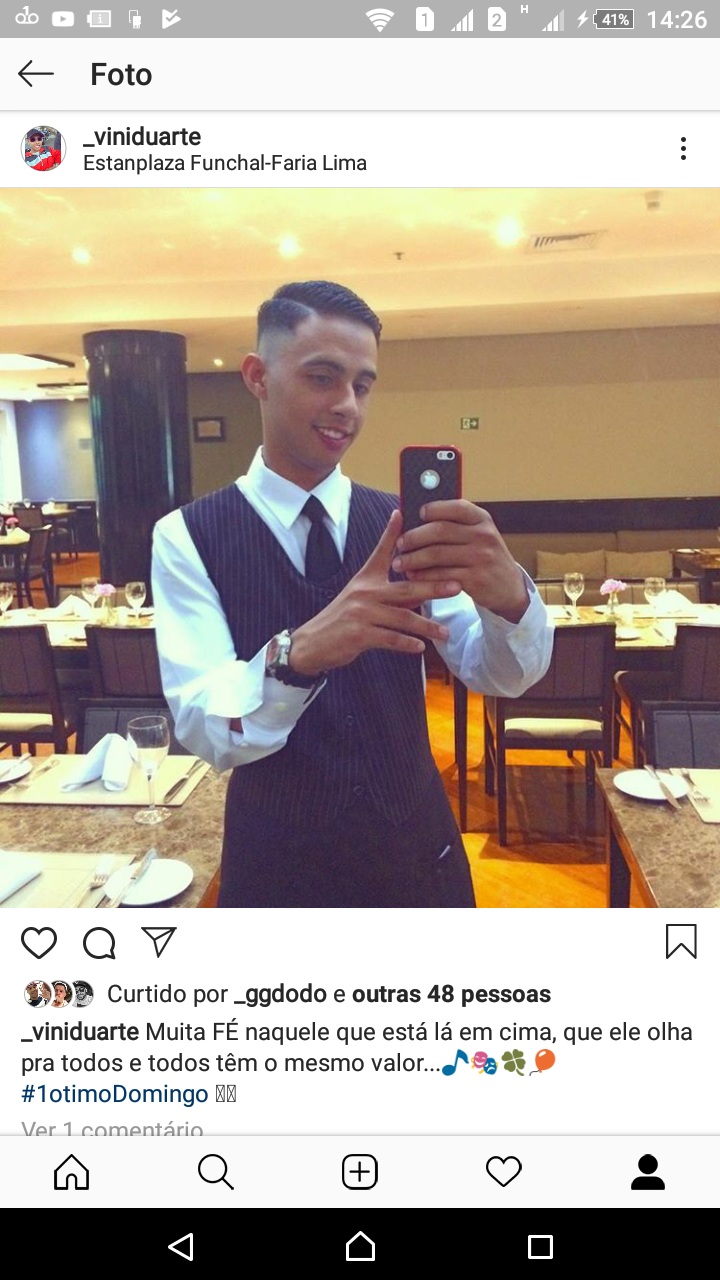 Sou Vinicius, jovem de 22 anos que busca aprimorar meus conhecimentos para conseguir um nível de vida estável. Atualmente estou desempregado. Meu último emprego foi no hotel Estamplaza, onde exercia a função de garçom. Passei por uma experiência no restaurante Ráscal de dois anos, na função de comim e garçom.